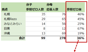 こちらが、各拠点別に、スクリプト参照ゼロ率を算出した結果です。